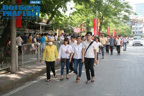 | Bắt đầu từ 5 giờ 30 sáng nay, có rất nhiều người xếp hàng tại Quảng trường Ba Đình theo dõi lễ chào cờ. |