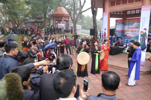 Mặc dù ngày mai (13/1 Âm Lịch), Hội Lim (Tiên Du, Bắc Ninh) mới chính hội nhưng trước một ngày đã có hàng ngàn người đổ về để nghe liền anh, liền chị hát quan họ.