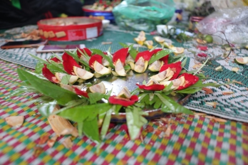 Các liền chị làm những miếng trầu phục vụ du khách. |