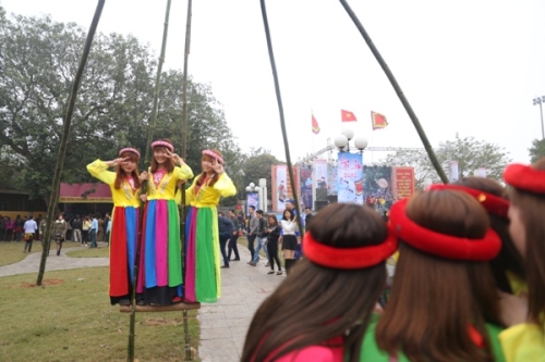 Nhiều trò chơi dân gian được các bạn trẻ yêu thích tại hội Lim. |