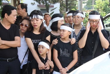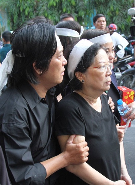 | Quang Hà khóc nấc khi hát "Buồn ơi chào mi" tiễn bố nuôi về nơi an nghỉ. |