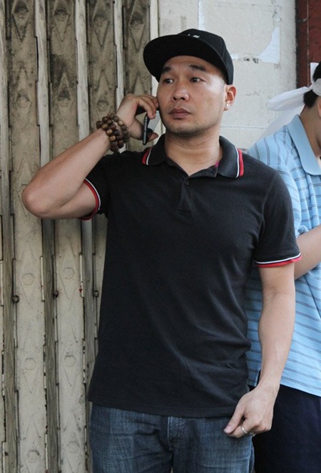 | Nam ca sỹ Quang Hà và anh trai có mặt tại nghĩa trang Bình Hưng Hoà trước giờ cử hành lễ hoả táng. |