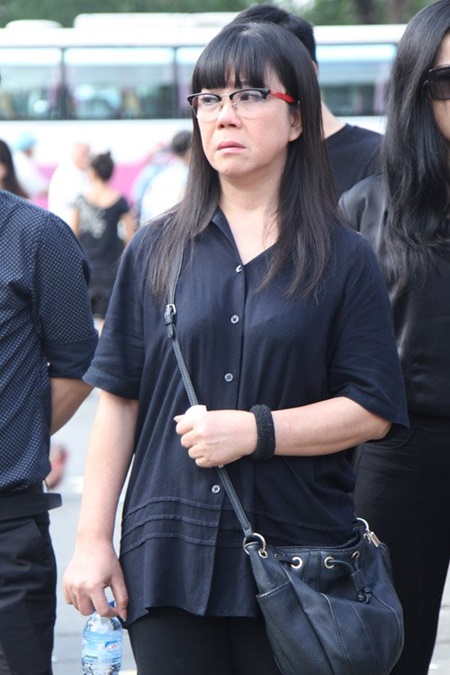 | Ca sỹ Ánh Tuyết luôn túc trực bên linh cữu của cố nhạc sỹ suốt những ngày qua. |