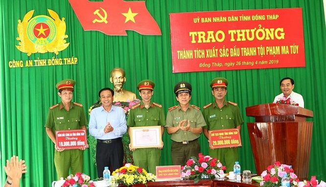 Đồng thời, thiếu tướng Nguyễn Minh Thuấn, Giám đốc Công an tỉnh Đồng Tháp cũng thưởng 10 triệu đồng cho các cá nhân có thành tích xuất sắc trong việc bắt giữ đối tượng vận chuyển 15 kg ma túy. Đây là vụ vận chuyển ma túy lớn nhất từ trước đến nay bị phát hiện bắt giữ trên địa bàn tỉnh Đồng Tháp.