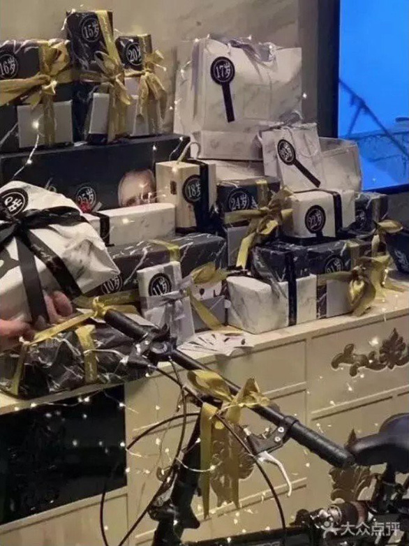 Một nam nhân viên của CLB "trai đẹp" ở Thượng Hải đã mừng sinh nhật 28 tuổi với 28 món quà đắt tiền được tặng bởi một nữ khách hàng.