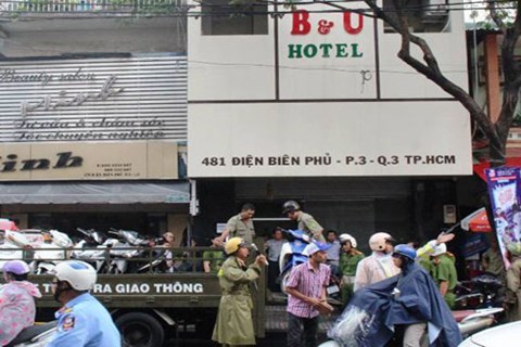 Theo thông tin ban đầu, qua quá trình điều tra theo dõi, khoảng 6h sáng 25-10, lực lượng gần 100 cán bộ chiến sĩ thuộc các đội nghiệp vụ của Công an quận 3 đã bất ngờ bao vây, ập vào kiểm tra hành chính đột xuất đối với Khách sạn B&U tại số 481, đường Điện Biên Phủ, phường 3, quận 3, TP.HCM.