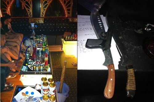 Tại các phòng hát 204 và 206, trinh sát phát hiện gần 40 thanh niên nam nữ đang tổ chức "bay", "lắc". Kiểm tra tại chỗ, lực lượng chức năng thu giữ 1,16 gram ma túy đá, 2 súng ngắn, 2 kiếm và một số dụng cụ sử dụng ma túy.