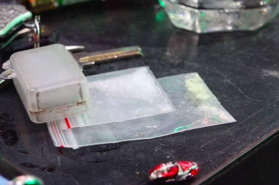 Chất được cho là ma túy trong quán bar. Ảnh: Công Lý |