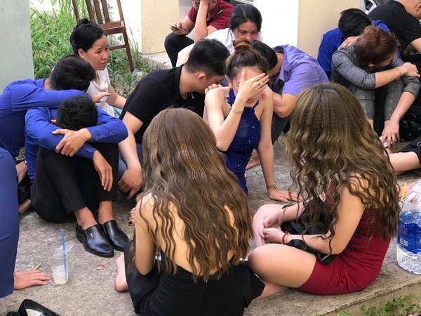 Khi cảnh sát ập vào kiểm tra, hàng chục nam nữ nghi phê ma túy bỏ chạy tán loạn để tẩu thoát nhưng đã bị chặn lại.
