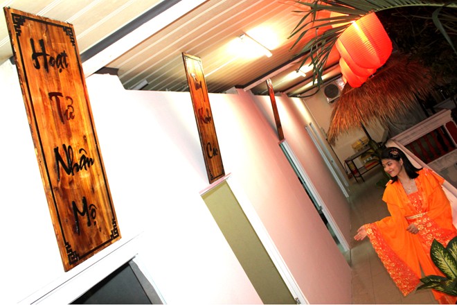 Chương trình khuyến mãi "gieo tú cầu". Một nhân viên nữ sẽ vào vai "mỹ nhân" gieo tú cầu từ trên cao xuống đất, khách nào giành được sẽ nhận phiếu quà tặng 100 "quan" (khoảng 100.000 đồng). |