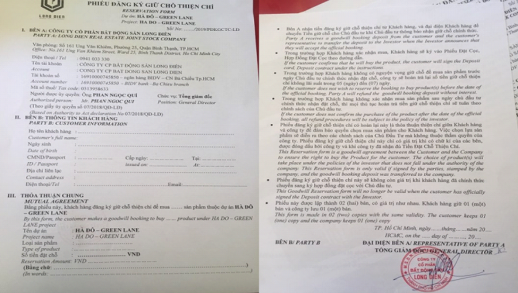 Hai nhân viên kinh doanh nhấn mạnh nếu mua sớm sẽ được chiết khấu 2 - 4% và được nhiều ưu đãi từ phía nhà đầu tư, hiện tại bên em đang nhận giữ chỗ với giá tiền 50 triệu/căn. Nhân viên này cho biết thêm dự án có 3 tòa cao 18 tầng, gồm 700 căn, căn hộ 1 phòng ngủ có diện tích 46 – 52 m2, tiếp đó căn hộ có 2 phòng ngủ là 59 – 70 m2, số căn hộ 3 phòng ngủ rộng 92m2…giá bán dự kiến 24 - 26 triệu đồng/m2. Giá để giữ chỗ được đưa ra là 50 triệu đồng/căn, sau một tuần lễ khách hàng phải bổ sung thêm 10% cho giá trị hợp đồng, tới tháng 6 năm 2019 khách hàng đóng tiếp 15% cho hợp đồng mua bán, sau đó cứ 45 ngày sẻ phải đóng 5%.