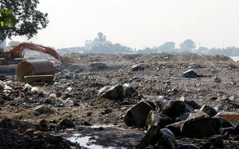 Dự án lấp sông tạm dừng thi công. Ảnh: VnExrpess |