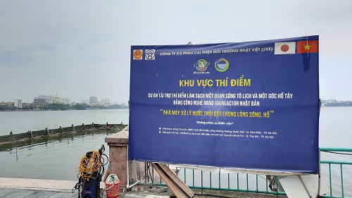 | Một phần dòng sông Tô Lịch đã từng được lựa chọn làm nơi để xử lý nước thải theo công nghệ Nhật. Công nghệ Nano-Bioreactor gồm hai yếu tố là máy sục khí nano tạo ra oxy trực tiếp kích hoạt vi sinh vật; các tấm vật liệu bioreactor là chất xúc tác, cung cấp giá thể, tạo môi trường sống cho vi sinh vật. Hai yếu tố kết hợp thúc đẩy quá trình tự làm sạch nước, phân hủy bùn. |
