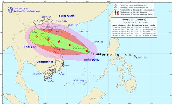 Dự báo trong 24 giờ tới, bão di chuyển theo hướng Tây Tây Bắc, mỗi giờ đi được 15-20km và mạnh lên. Đến 19h ngày 14/9, vị trí tâm bão ở vào khoảng 17,0 độ Vĩ Bắc; 110,8 độ Kinh Đông, trên khu vực phía Tây quần đảo Hoàng Sa, cách bờ biển các tỉnh Nghệ An-Hà Tĩnh khoảng 490km về phía Đông Đông Nam. Sức gió mạnh nhất ở vùng gần tâm bão mạnh cấp 12 (115-135km/giờ), giật cấp 15.