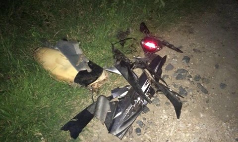 Chiếc xe máy của 2 vợ chồng bị vỡ vụn. |