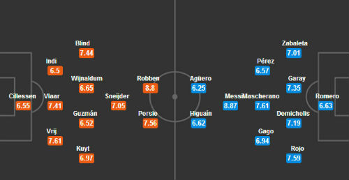 Bên kia chiến tuyến, đội tuyển Hà Lan lại thể hiện điều ngược lại. Sau từ trận hủy diệt Tây Ban Nha, đoàn quân của Van Gaal dù vẫn giành chiến thắng nhưng không ấn tương như trước. Thậm chí đội bóng áo da cam đã hơn một lần hút chết như trận thắng 3-2 trước Australia, 2-1 trước Mexico hay mới nhất là việc vất vả hạ Costa Rica trên chấm 11m. Tuy nhiên nếu chỉ nhìn vào đó mà đánh giá thấp Hà Lan là một sai lầm. Theo chính thừa nhận của người thuyền trưởng 63 tuổi cuả đội, Hà Lan không hay nhưng rất khó bị đánh bại. Vào những thời khắc quyết định, cơn lốc màu da cam vẫn luôn tìm ra được nhân tố tạo ra sự khác biệt, vào vai người hùng. Đó chính là lối đá tập thể chặt chẽ mang đậm dấu ấn của ông thầy lão luyện Van Gaal.