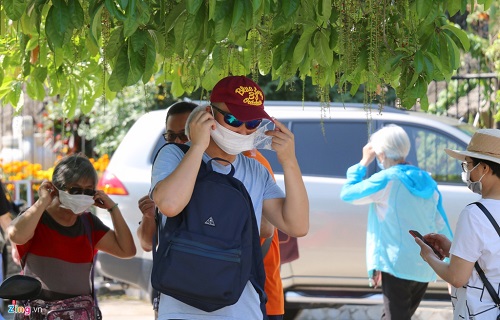 Chiếc khẩu trang trở thành vật "bất ly thân" của những vị khách trong suốt hành trình tham quan các điểm du lịch. Ảnh: Zing |