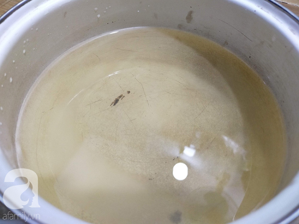 - Bước 2: Giấm hoa quả đổ vào nồi, thêm 1 bát ăn cơm nước lọc, 2 thìa muối tinh, 1 thìa đường rồi đặt lên bếp đun sôi, sau đó để thật nguội.