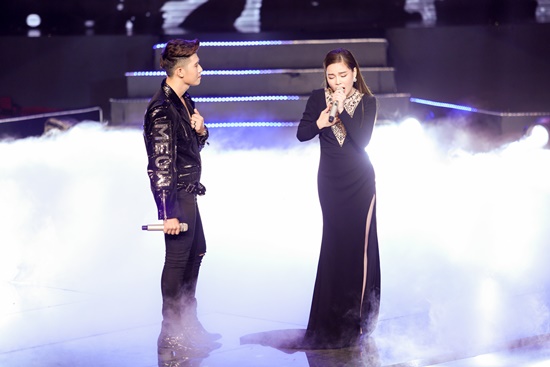 | Phần thi cuối cùng trong đêm chung kết chính là tiết mục kết hợp của thí sinh Trần Lê Bích Tuyết và ca sĩ ERIK. Bản hit Ghen được làm mới để cả 2 cùng khoe giọng hát và những động tác vũ đạo đẹp mắt, lôi cuốn. |