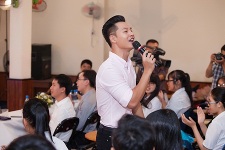 Khi kết thúc phần talkshow căng thẳng, nam ca sĩ thay đổi không khí buổi giao lưu với ca khúc Nối vòng tay lớn và tặng những món quà như đĩa CD hay giấy xếp Origami theo hình những nhân vật trong pokemon cho những bạn trẻ trong buổi tọa đàm. Đến cuối giờ anh còn nán lại để chụp hình và kí tặng với những đàn em khóa dưới.