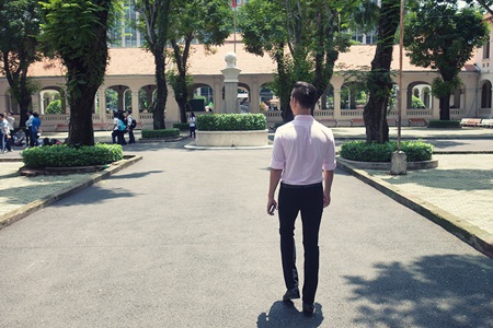Trở về trường Lê Hồng Phong tham dự cho buổi talkshow “Bạn là ai trước ngưỡng cửa cuộc đời”, nam ca sĩ Đức Tuấn ăn mặc giản dị với quần tây và áo sơ mi sọc pastel. Trong buổi tọa đàm này, anh đóng vai trò là khách mời và cùng các diễn giả khác bộc lộ về những quan điểm lựa chọn thái độ sống, làm việc của các bạn trẻ trước bước ngoặt lớn sắp đến.