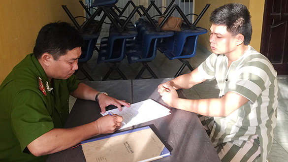 Đối tượng Quốc tại cơ quan công an (Ảnh: báo Tuổi Trẻ) |