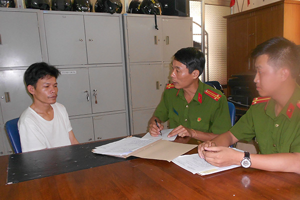 Các điều tra viên lấy lời khai đối tượng Lương Thanh Hà. |