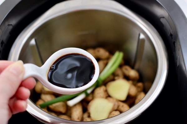 - Bước 2: Thêm 3 thìa súp nước tương rồi trộn đều lên.