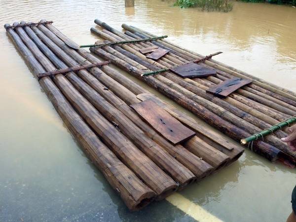 Chiếc bè đơn giản bỗng biến thành "siêu xe" trong đám hỏi đặc biệt mùa nước lũ - (Nguồn: Vitalk). |