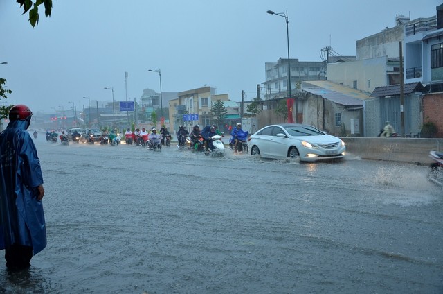 Trong khi đó, tuyến xa lộ Hà Nội đoạn gần cầu Rạch Chiếc (quận 2) cũng bị ngập đến nửa xe máy, các phương tiện phải di chuyển chậm, sát trong làn đường dành cho xe ô tô để không bị chết máy.