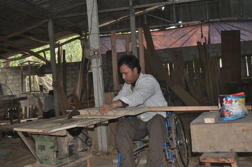 Cơ sở sản xuất đồ gỗ của anh Tám đã tạo việc làm cho nhiều người khuyết tật. |