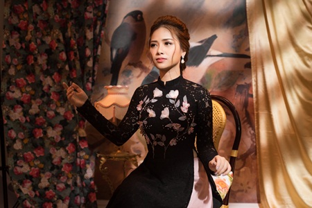 Trong bộ ảnh, Dương Hoàng Yến gây ấn tượng với loạt áo dài cách tân, hoạ tiết trên áo được cách điệu và đính nhiều chi tiết mới mẻ, hấp dẫn.