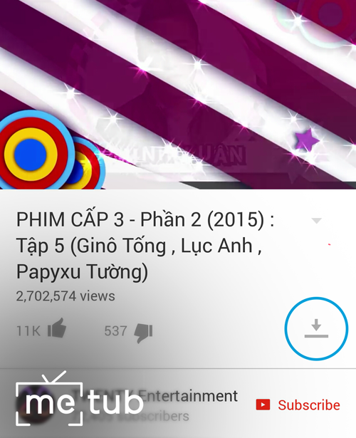 Nhấn vào biểu tượng này để có thể tải Video về YouTube App. |