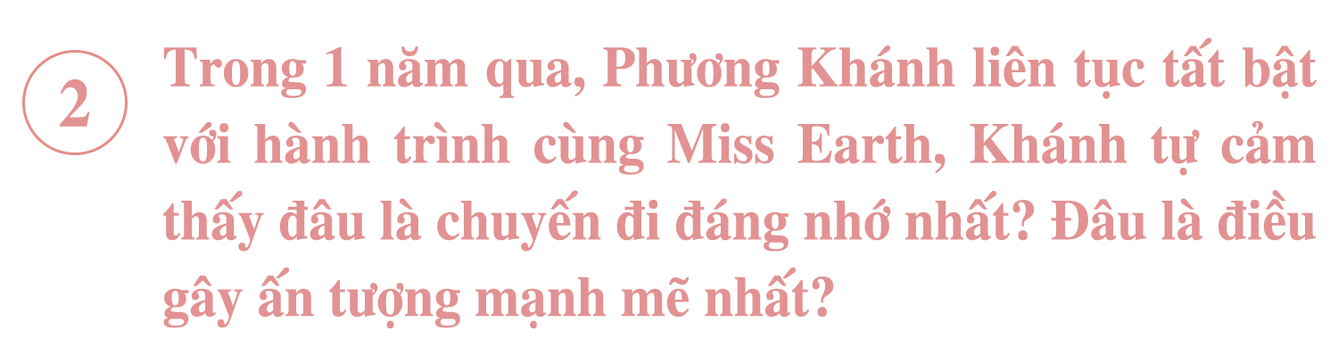 Đối với tôi, ở thời điểm hiện tại chỉ có hai chữ: hài lòng. Không chỉ với bản thân mà tôi còn hài lòng vì tất cả mọi người, những người thân, bạn bè, đồng nghiệp, đặc biệt là những người vẫn luôn yêu mến, dõi theo ở khắp mọi nơi trên thế giới đều nhìn thấy được hành trình 1 năm qua của Hoa hậu Trái Đất Phương Khánh.