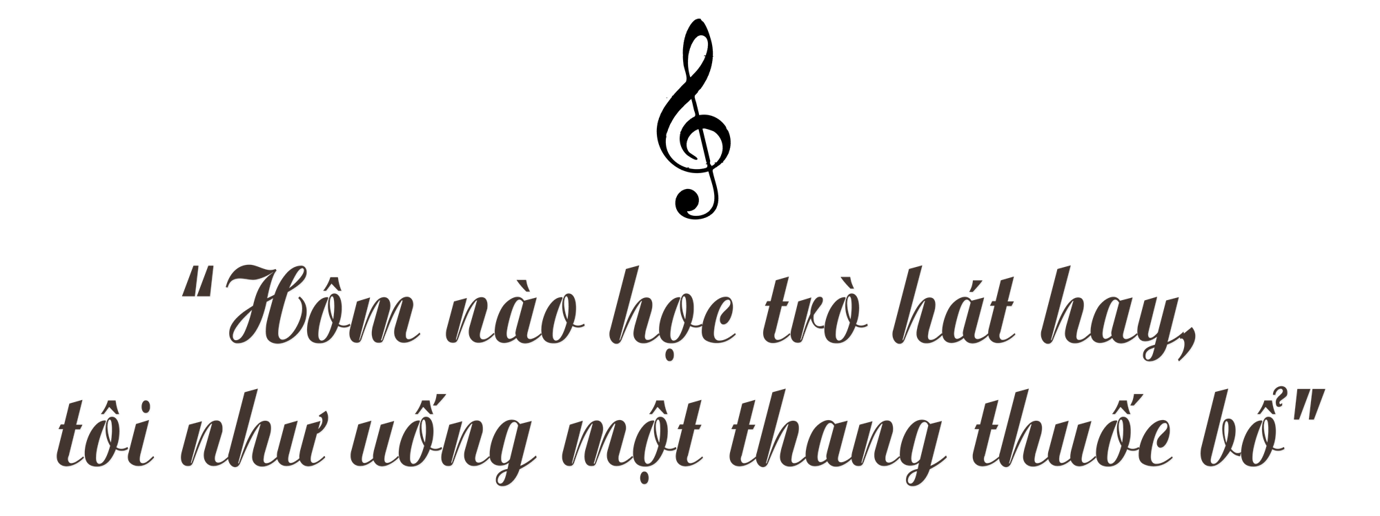 “Hôm nào học trò hát hay, tôi như uống một thang thuốc bổ. Còn nếu như hát không ra gì, cảm giác như mình vừa uống một bát thuốc độc, người bứt rứt, bức xúc lắm!”, người thầy hơn 90 tuổi vui vẻ tâm sự.