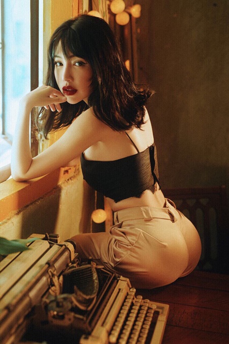 Nữ diễn viên chọn kiểu tóc trẻ trung, nổi bật với đôi môi gợi cảm trong bộ ảnh lần này. |