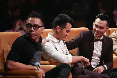 | Khắc Hưng đã bật khóc ngay khi thí sinh của mình thể hiện xong ca khúc. |