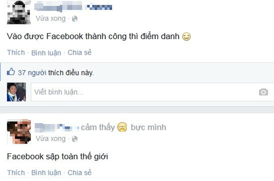 Thông tin này khiến cộng đồng mạng xôn xao, dành cho nhau những câu hỏi như “Có vào được facebook không?” hay “Sao facebook không vào được nhỉ?”. Thậm chí nhiều người tỏ ra lo lắng nên đăng nhập facebook liên tục nhưng cũng đành "bó tay".