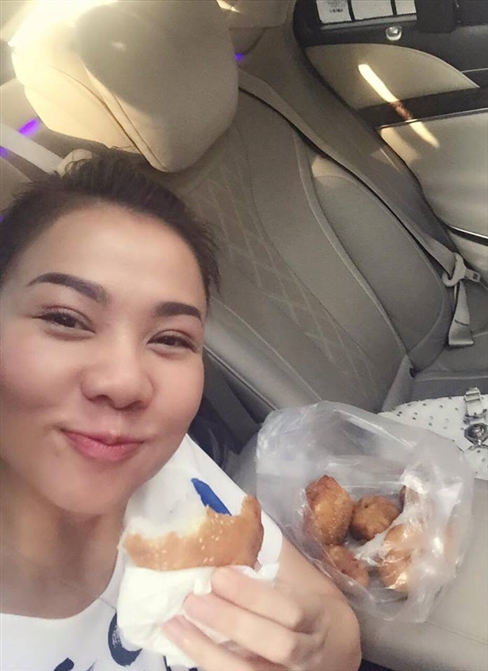 Ca sĩ Thu Minh thoải mái ăn bánh trên xe ô tô: “Ai ăn bánh bò bánh tiêu không?" |