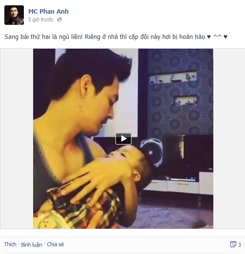 (ĐSPL) - Chàng MC điển trai Phan Anh đã nhận được nhiều lời khen ngợi từ bạn bè và khán giả khi chia sẻ trên trang cá nhân đoạn clip ngắn với thời lượng 16s khoe tài hát ru con ngủ.