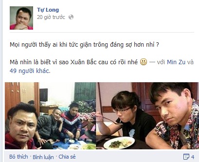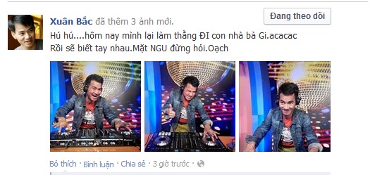Diễn viên Xuân Bắc: "Hú hú, hôm nay mình lại làm thằng đi còn nhà bà Gi. Rồi sẽ biết tay nhau. Mặt ngu đừng hỏi. Oạch".