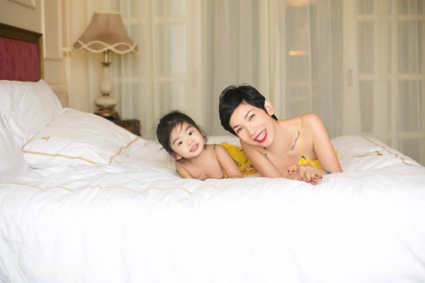 Siêu mẫu Xuân Lan rạng rỡ tươi cười bên con gái – bé Thỏ đáng yêu. |