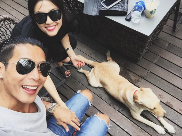 | Tăng Thanh Hà rạng rỡ chụp ảnh cùng một người bạn thân. |