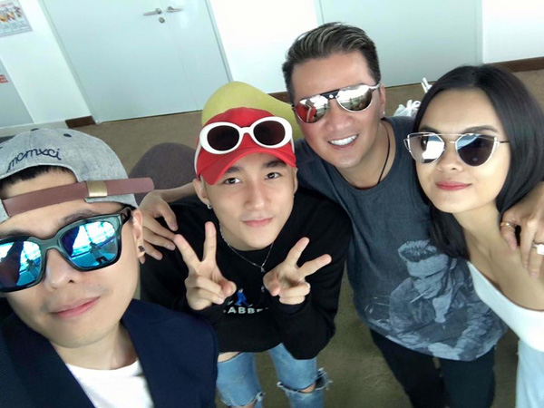 | Đàm Vĩnh Hưng vui mừng khi hội ngộ Sơn Tùng M-TP, Phạm Quỳnh Anh và Trịnh Thăng Bình tại sân bay. |