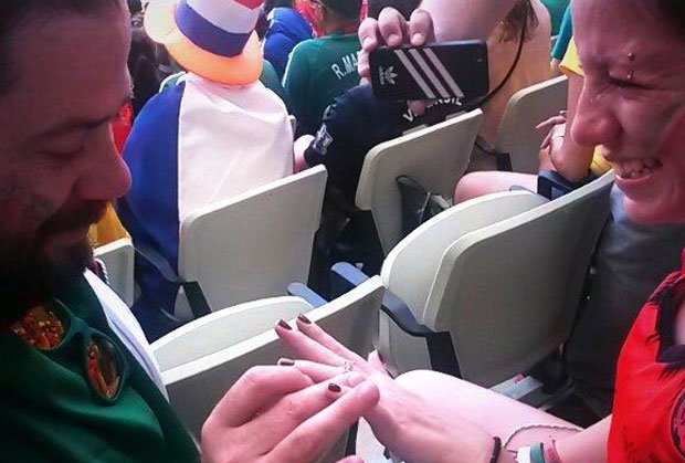 | CĐV Mexico cầu hôn bạn gái trên khán đài khi đội nhà dẫn bàn... |