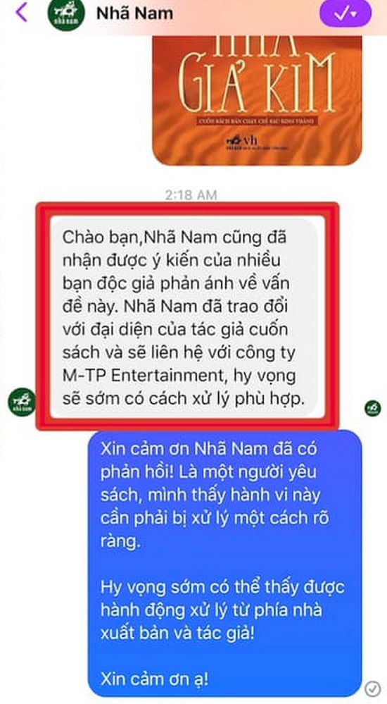 Không dừng lại ở việc nhắn tin cho Nhã Nam, một số bạn còn liên tục comment bày tỏ sự phẫn nộ trên trang Facebook tác giả Paulo Coelho, do đó đại diện của tác giả đã gửi mail cho Nhã Nam, mong muốn tìm hiểu rõ hơn về sự việc.
