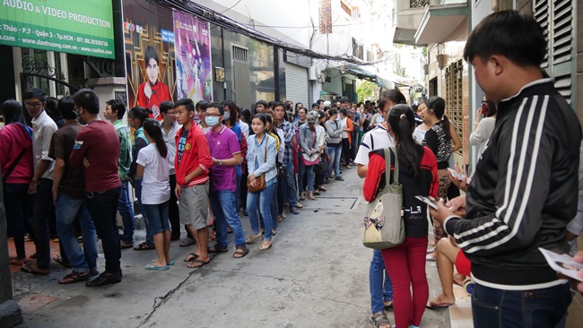 | fan "bao vây" nhận vé tại trụ sở công ty quản lý của Đan Trường. |