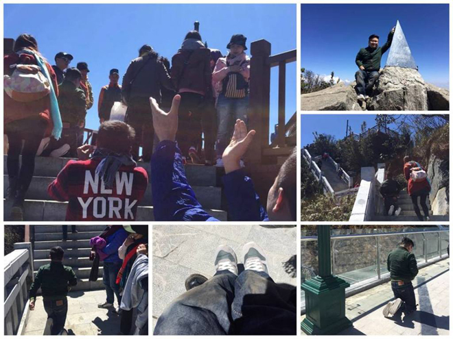 Mất khoảng hơn 1 tiếng để tôi bò lên đỉnh Fansipan với tiếng vỗ tay và hò hét của những du khách đi cùng. Họ chụp ảnh cùng, bắt tay chúc mừng, nhưng tôi không còn nhìn thấy gì nữa, tai ù đi và mắt nhòe cay.”