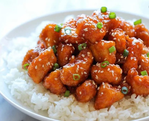 - Bước tiếp theo cho tỏi vào đảo cùng tới khi dậy mùi thơm. Đổ thịt gà vào trộn đều ở lửa nhỏ để thịt gà ngấm sốt chua ngọt là xong.