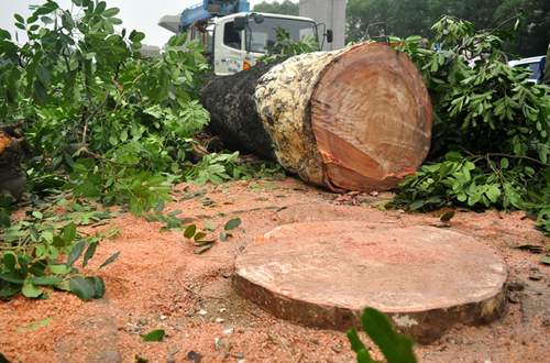 Hiện đã có 500 cây bị chặt trong thời gian vừa qua, trong đó có rất nhiều cây xà cừ cổ thụ.